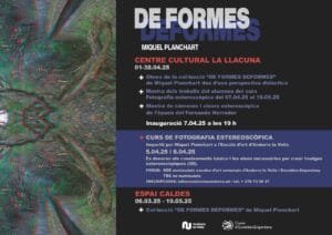 Curs de Fotografia Estereoscòpica Impartit per Miquel Planchart L'Escola d'Art d'Andorra la Vella acollirà els dies 5 i 6 d'abril de 2025 un curs intensiu dedicat a la fotografia estereoscòpica. Aquest curs ofereix una introducció als conceptes bàsics i les eines necessàries per crear imatges en 3D, una disciplina que permet explorar la tridimensionalitat a través de la fotografia. Horaris: Dissabte 5 d'abril: de 10:00 a 14:00 h i de 15:30 a 19:30 h Diumenge 6 d'abril: de 10:00 a 14:00 h Temari: Introducció a la fotografia estereoscòpica: què és i com funciona Tècniques i eines per capturar imatges en 3D Processament digital i creació d’efectes estereoscòpics Pràctiques de captura i edició Aplicacions artístiques i narratives de la fotografia 3D Material necessari: Càmera digital (preferiblement amb ajustaments manuals) Preus: 60€ per a alumnes matriculats a l'Escola d’Art d’Andorra la Vella i Escaldes-Engordany 78€ per a no matriculats Inscripcions: Contacte: lallacuna@comuandorra.ad Telèfon: +376 73 00 37 Exposició "De Formes Deformes" a Espai Caldes Del 6 de març al 10 de maig de 2025, Espai Caldes acull l’exposició "De Formes Deformes" de Miquel Planchart. Aquesta mostra presenta un recorregut immersiu per imatges tridimensionals creades mitjançant la tècnica estereoscòpica, permetent dues lectures: una abstracciona i una figurativa. L’exposició està acompanyada d’un ambient sonor dissenyat per Lluís Casahuga, Kic Barroc i Toni Gibert del laboratori de creació sonora Fonorama. La seva composició evoca les textures i formes de les obres exposades. Activitats relacionades: Visites guiades amb l'artista Dissabte 22 de març, a les 16:00 h Dissabte 26 d’abril, a les 12:00 h Concert "Deformes Musicals" (acte de cloenda) Divendres 9 de maig, a les 20:00 h Actuació d’electrònica en viu amb Fonorama Entrada gratuïta amb reserva prèvia a espai.caldes@e-e.ad o al telèfon +376 890 897. Aquest curs i exposició ofereixen una experiència única per als amants de la fotografia i les arts visuals, explorant la frontera entre la realitat i la ficció a través de la tridimensionalitat.
